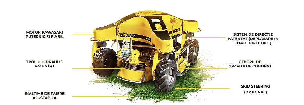 Această cositoare a fost supusă unei dezvoltări tehnologice și este acum echipată cu sistemul de direcție Skid Steering, ceea ce facilitează manevrarea mașinii.